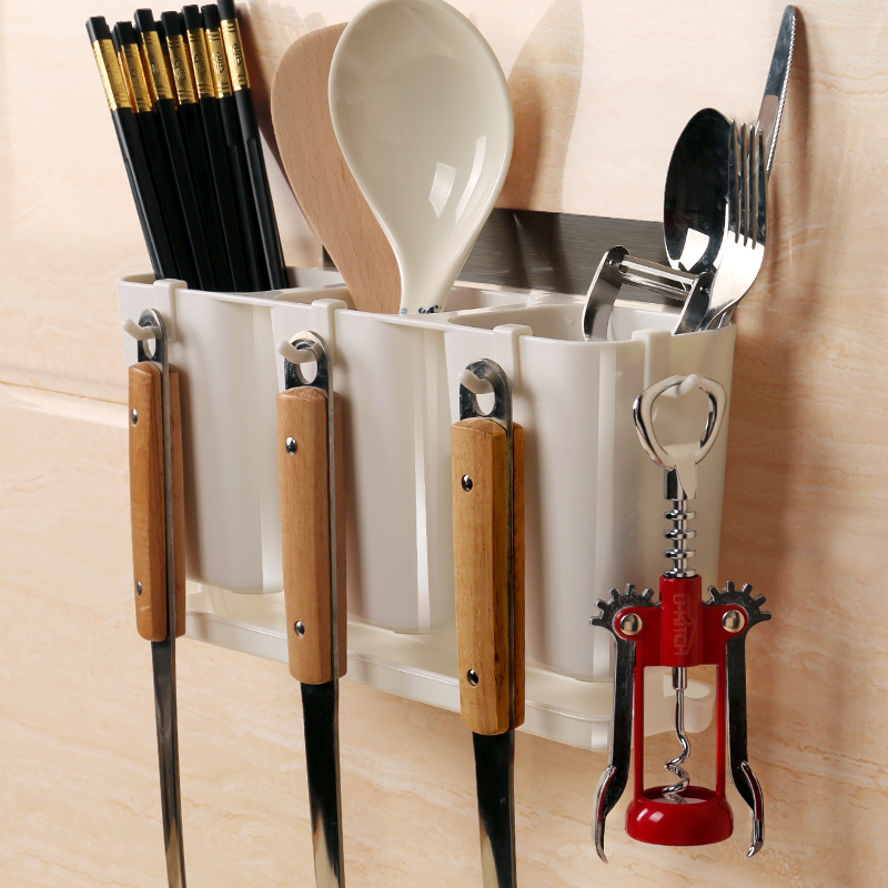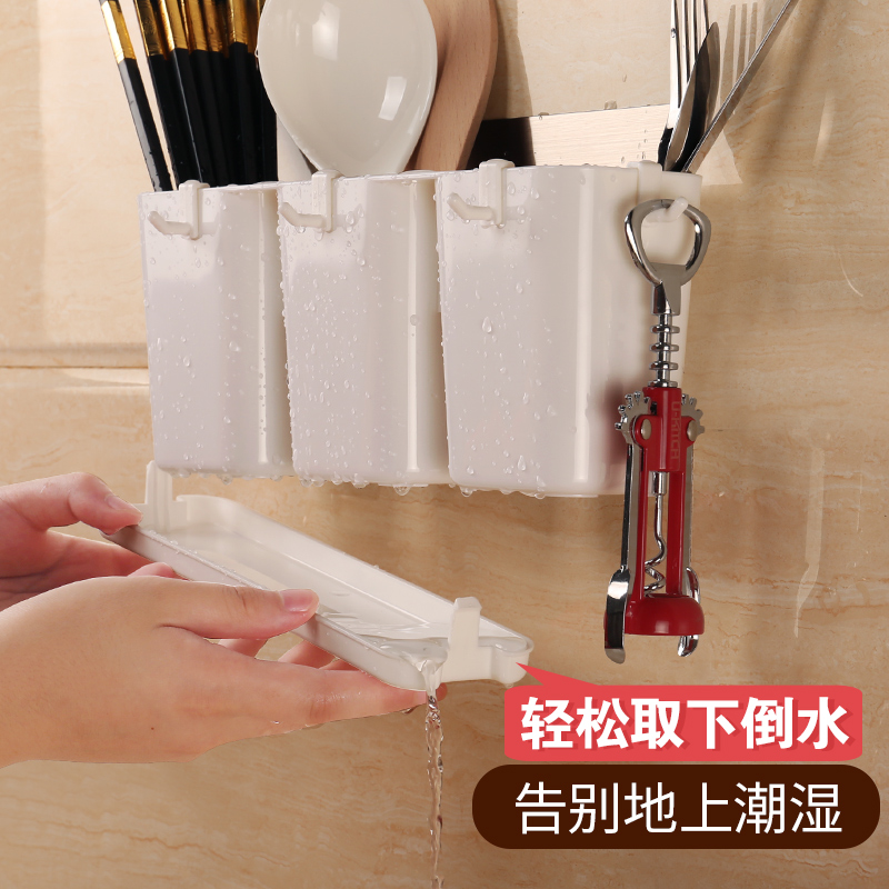 Chopstick tube Wall-mounted drain chopstick cage Hanging hole-free multi-function plastic chopstick box Household chopstick storage shelf