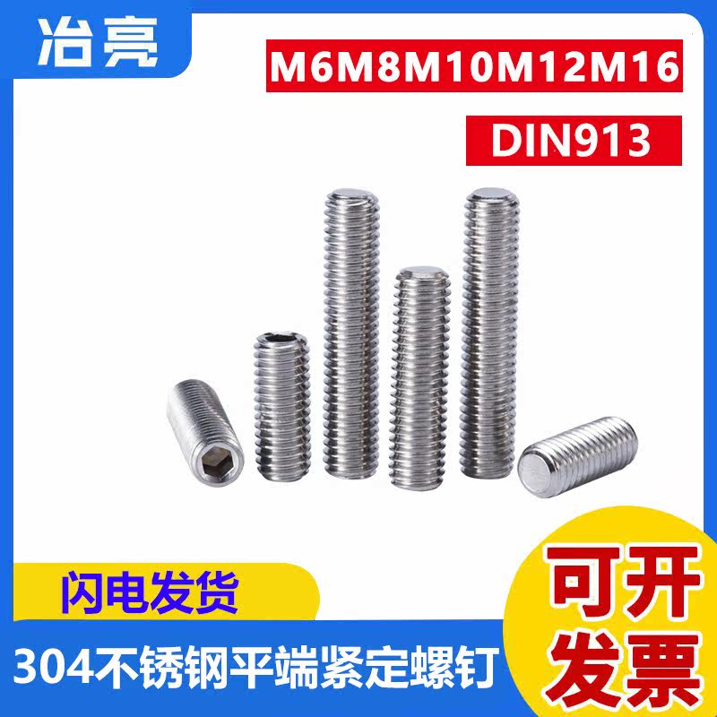 304 stainless steel flat end fixing bolts M6M8M10M12M16* inner hexagonal top wire machine meter headless screws