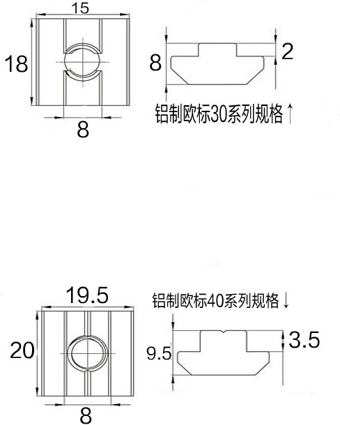 Aluminum Euro Label slider nut square nut T nut block 30 40 Type M5 6 8
