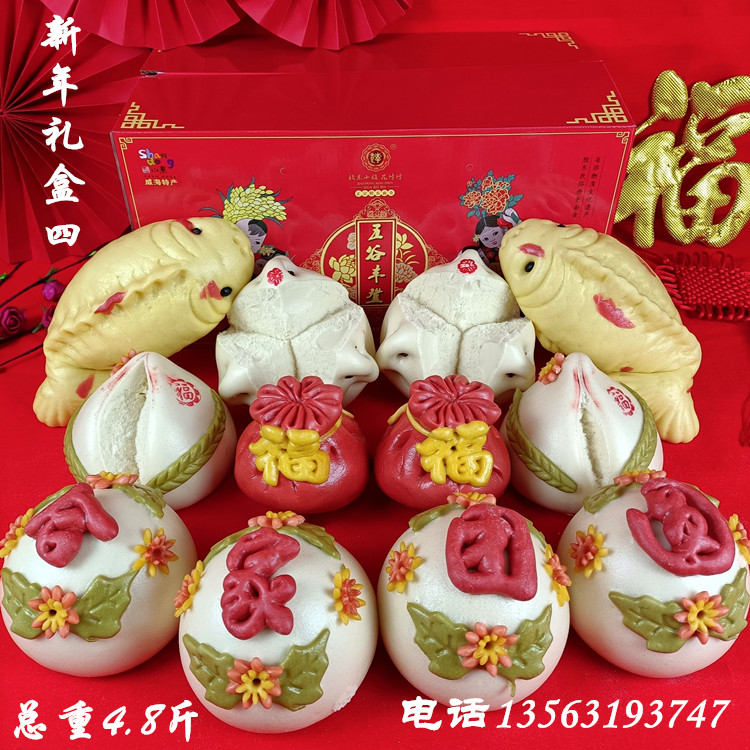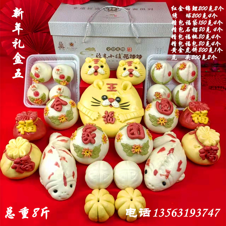 Wei Haixi Steamed Bread Steamed Bread Steamed Bread with Tiger Glue East Flower cake Birthday Peach Cucuts Yuanbao Yuan Bao Spring Festival New Year's Gift Boxes
