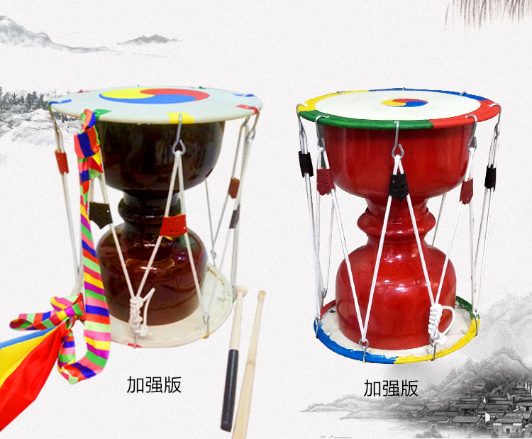 Adult North Korean long drum waist drum stick drum pull rope cowhide painted drum children dance dance props drummer beat drum