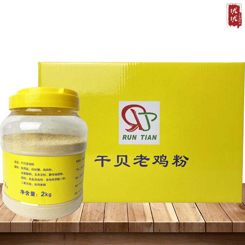 (Jiangyang Market) Guangdong Runtian dried scallop old chicken powder 2kg 2 bottles a box of seasoning powder chicken powder stir-fry soup