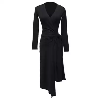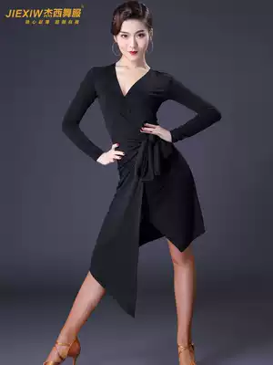 Fire leaf flower Latin dance dress female V-collar lace slim slim practice uniforms adult long sleeve training class clothes