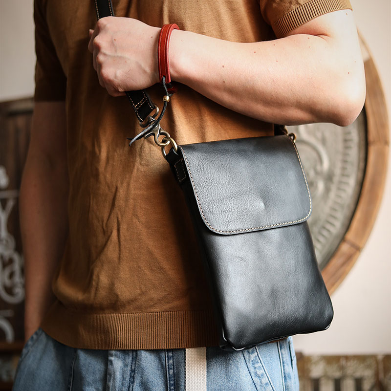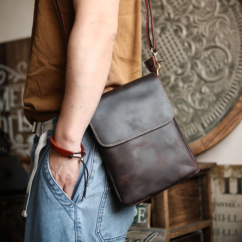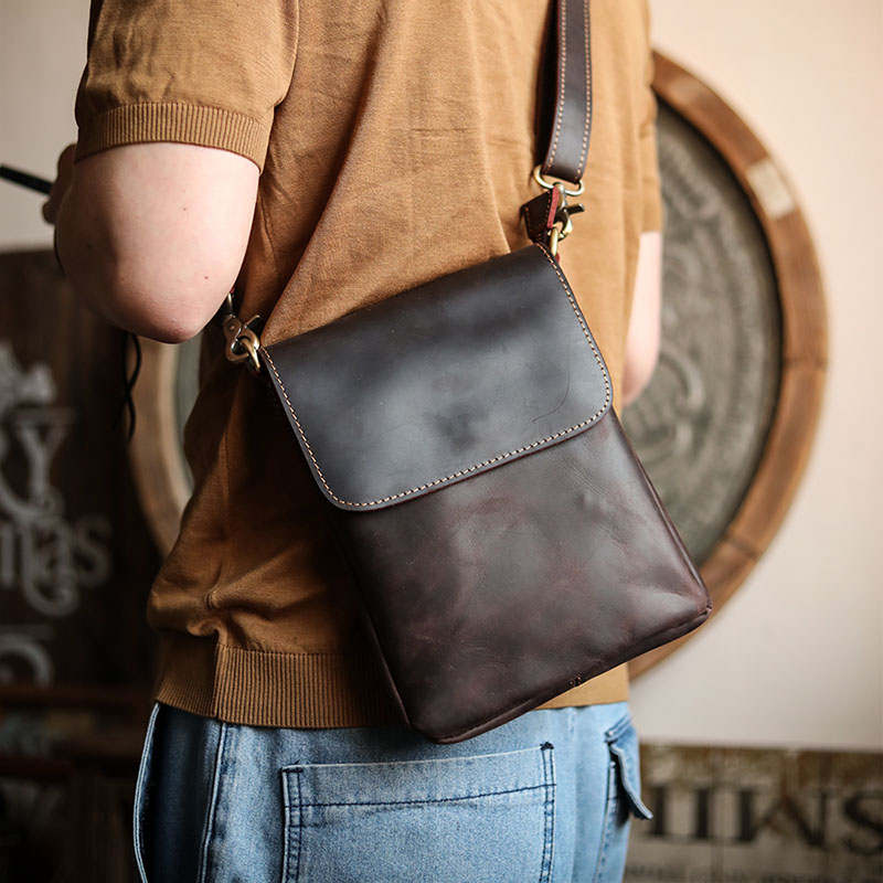 Zeau also handmade genuine leather men's bag retro men's bag mini casual small scapegoat bag vertical single shoulder bag small satchel bag