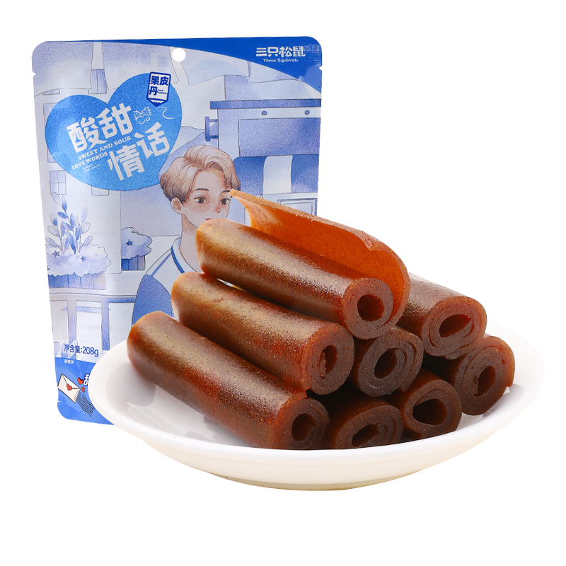 (Three Squirrels _ RollEd Fruit Danpi 208gx2) Snack Preserved Fruit Hawthorn Candied Roll Dried Hawthorn Slices
