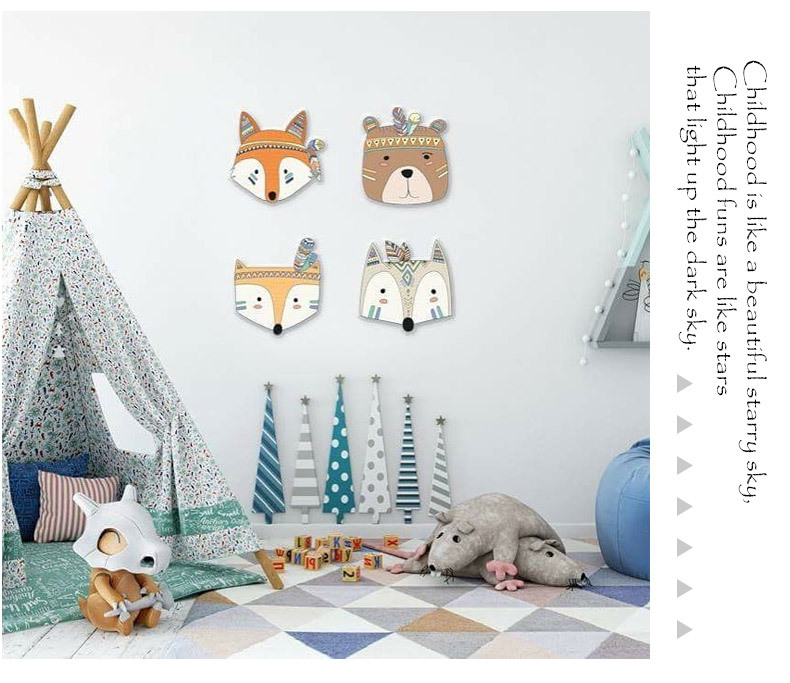 ins creative cartoon wall sticker children's room nursery wall decoration wood-plastic plate Animals removable wall stickup pendant