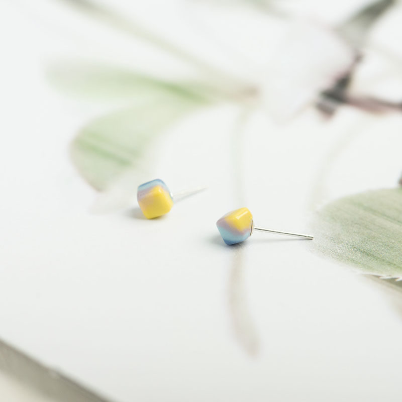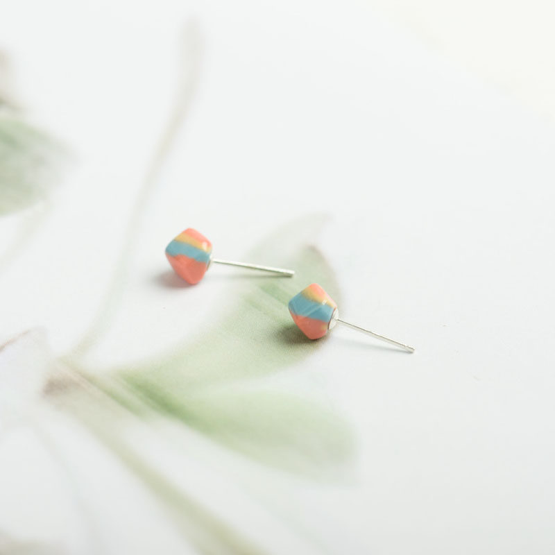 Hua Su New Products Handmade Candy S925 Pure Silver Needle Female Geometric Square Series of Simple Temporary Pure Headjewelry