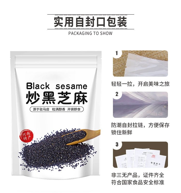 Fried black sesame cooked ready-to-eat bagged 500g sand-free leave-in-place farm new sesame dried snacks bulk sesame seeds