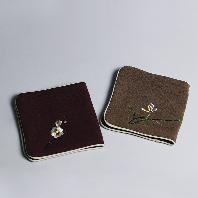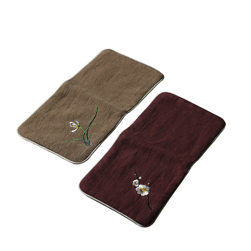 Hanshanju hand-embroidered plum cotton linen tea towel absorbent thickened tea cloth embroidered orchid towel tea ceremony accessories