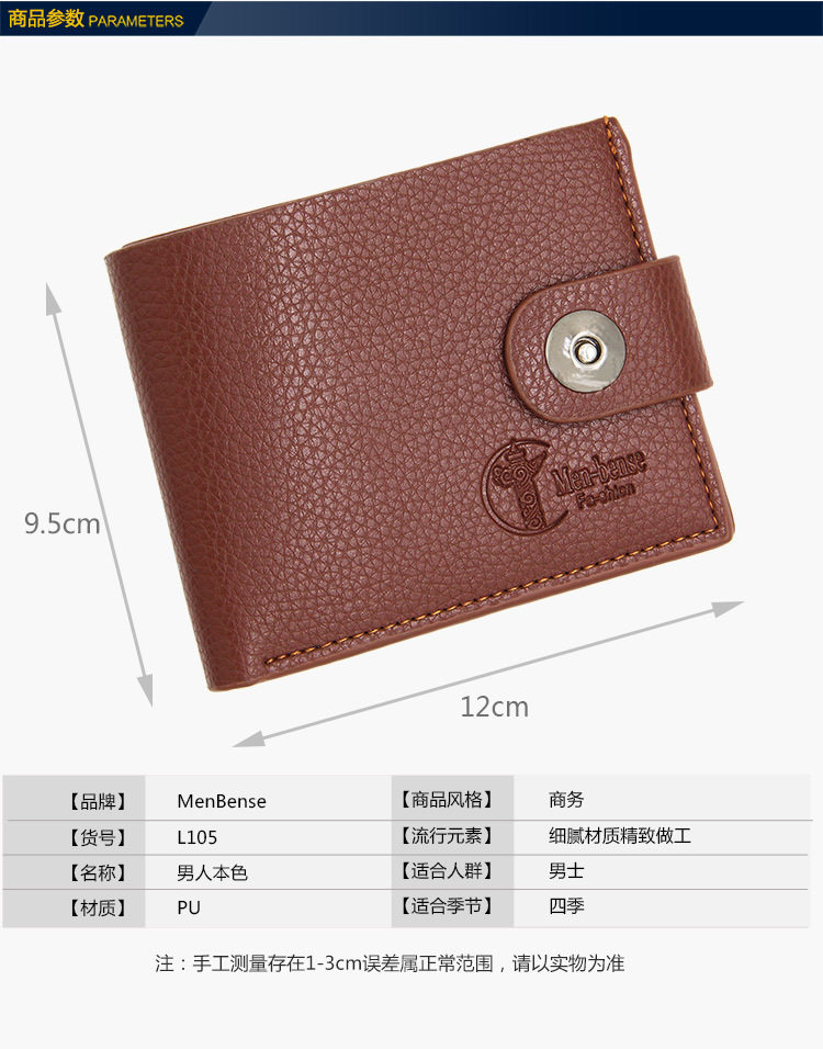 Zipper Coin Purse Magnetic Buckle Wallet Men's Short Section Multi-function Card Holder Buckle Ticket Holder Horizontal Versatile Wallet