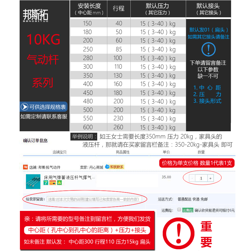 Pneumatic spring nitrogen hydraulic support rod cabinet upturn door window bed car advertising publicity column light box 15 kg