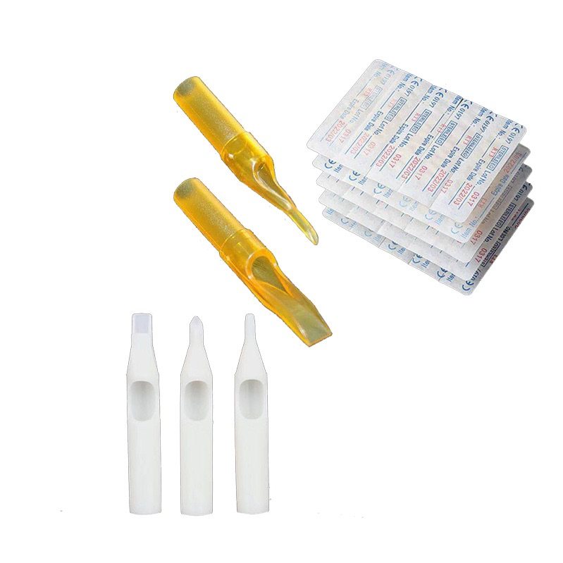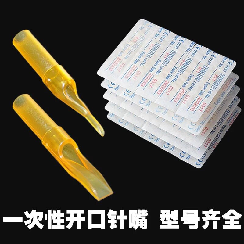 Yellow transparent needle mouth disposable tattoo needle nozzle universal round open seal closed diamond needle blast