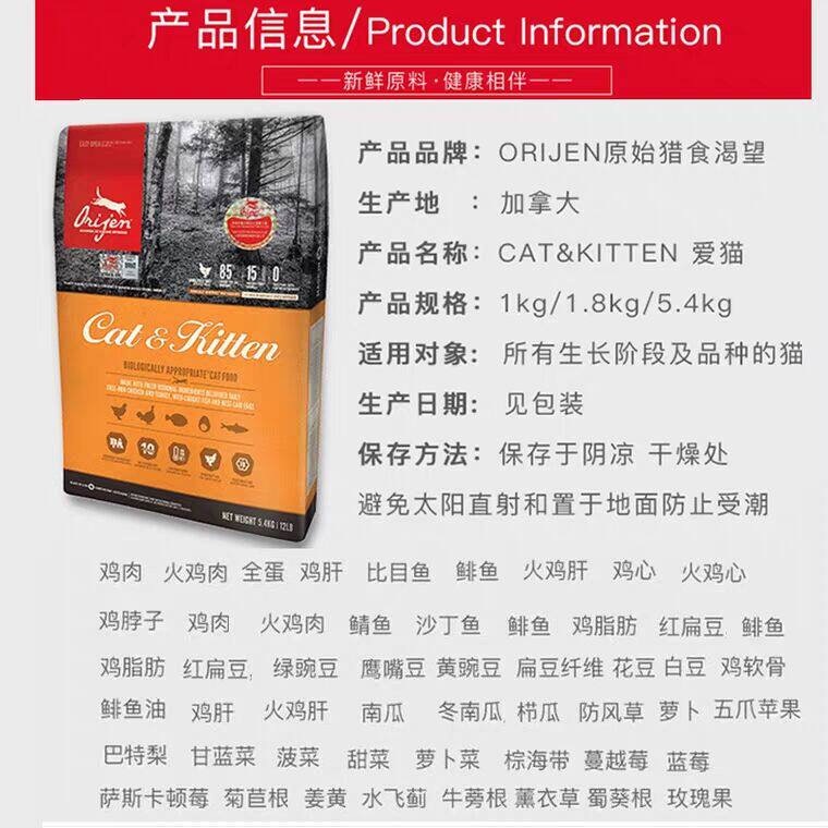 Madian Lao Zhao Canada Craving Grain-free Natural Food Adult cat Kitten Grain-free low-sensitive chicken whole cat food 1 8kg