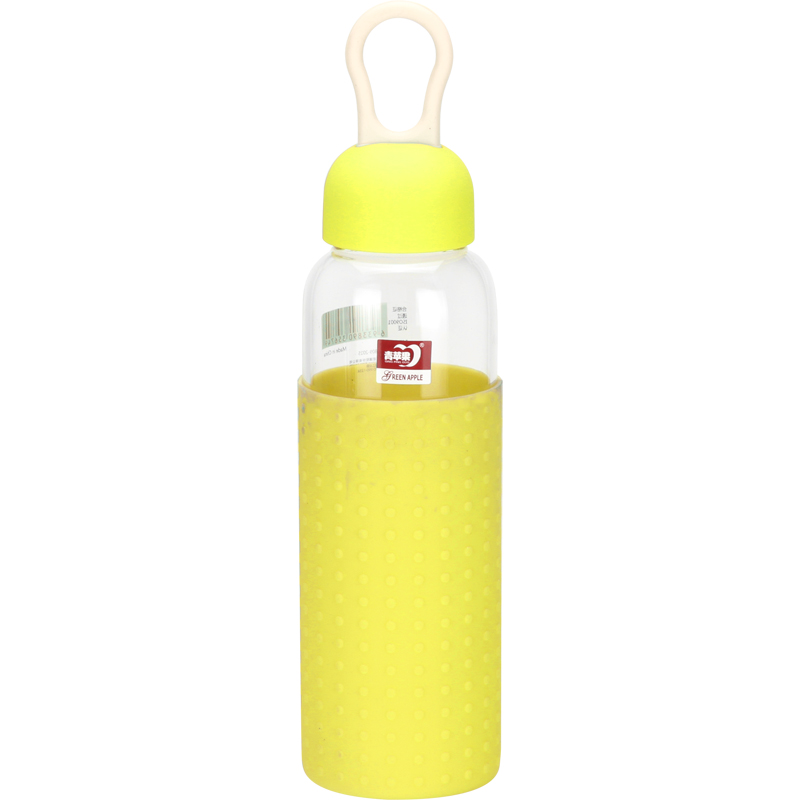 Green apple accompanying cup covered with lifting rope heat resistant glass cup students girls sports water cup portable tea cup