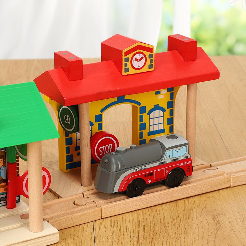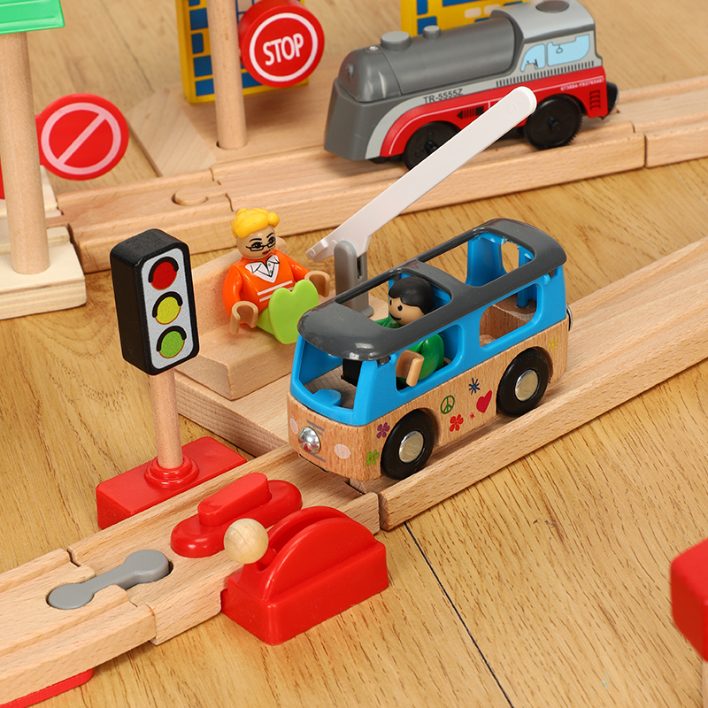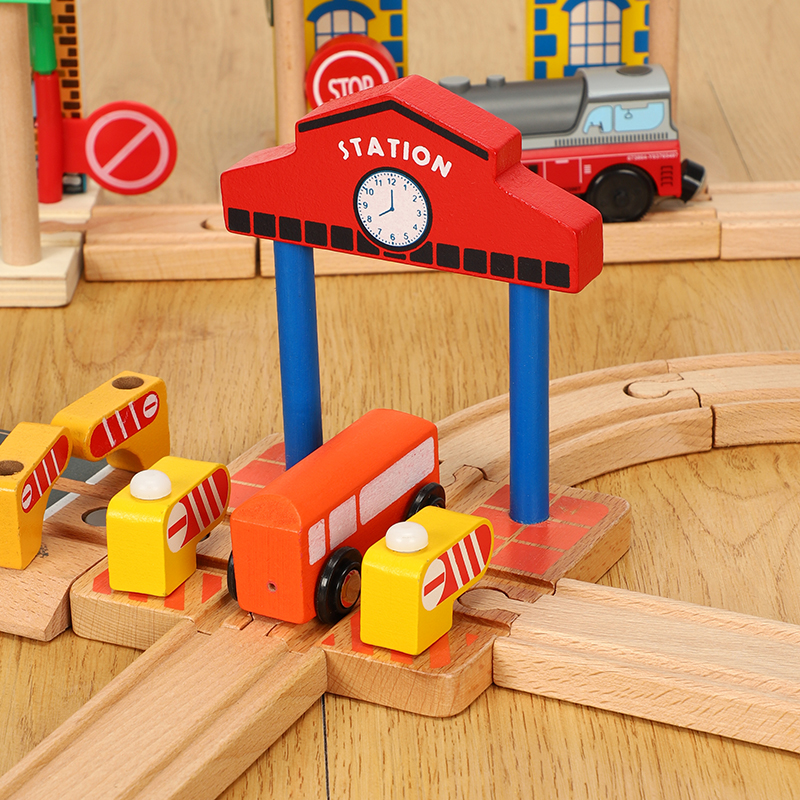 Wooden track Obstacle Train Track Toy Scene Barricade accessories Compatible Wooden Track Set Children's toys