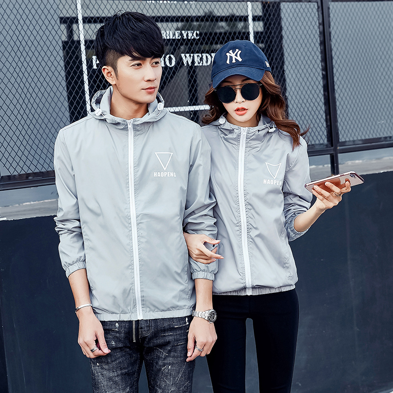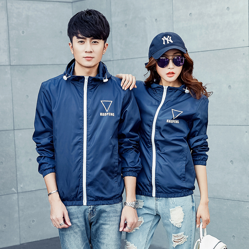 Couple-wear men and women with same hat coat spring and autumn outdoor skin clothes running and wind-proof coat
