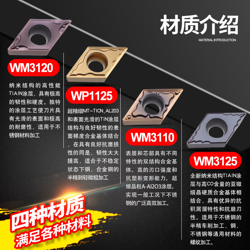 Wallock CNC car blade stainless steel special DCMT11T302 04 diamond lined inner hole machining knife grain