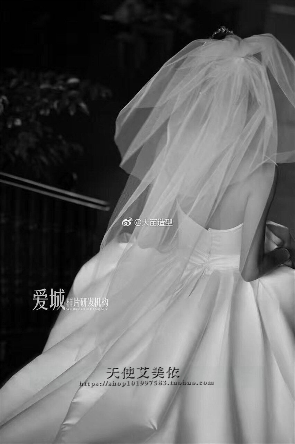 Korean minimalist white vegan yarn Short Wedding Photo Brigade Pat Bridal Wedding Dresses Double Layer Hard Material Wedding Styling