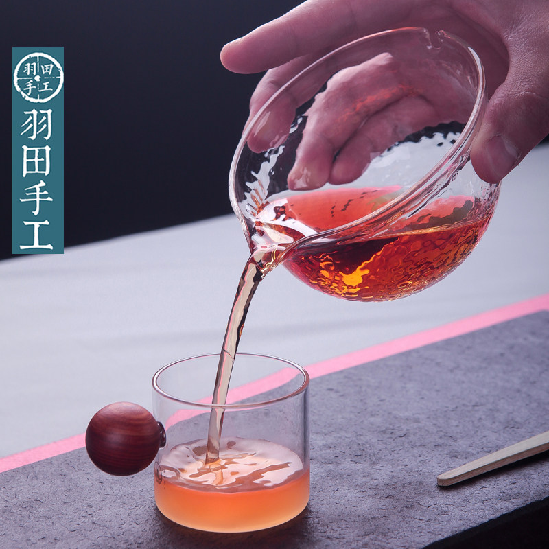 Haneda's new bamboo tea needle drainage fair cup tea leak set Japanese hammer pattern heat-resistant glass male cup even cup