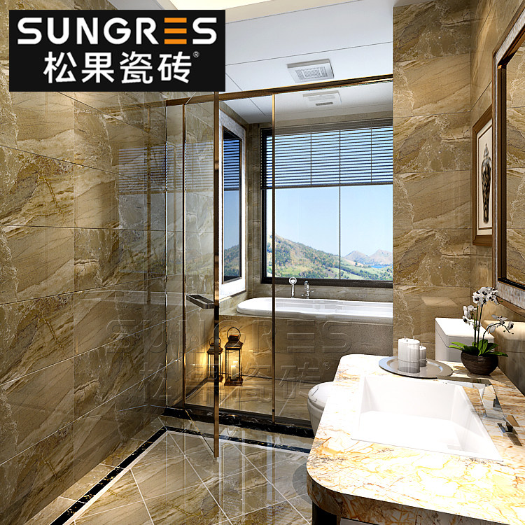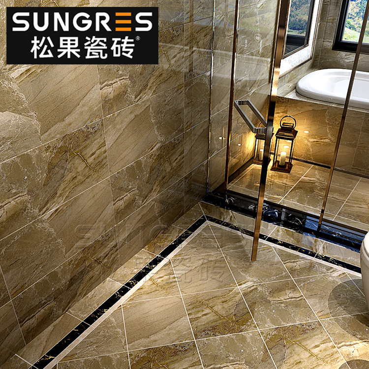 Coffee color all-over marble tile modern simple bathroom toilet kitchen wall tile floor tile 300 600