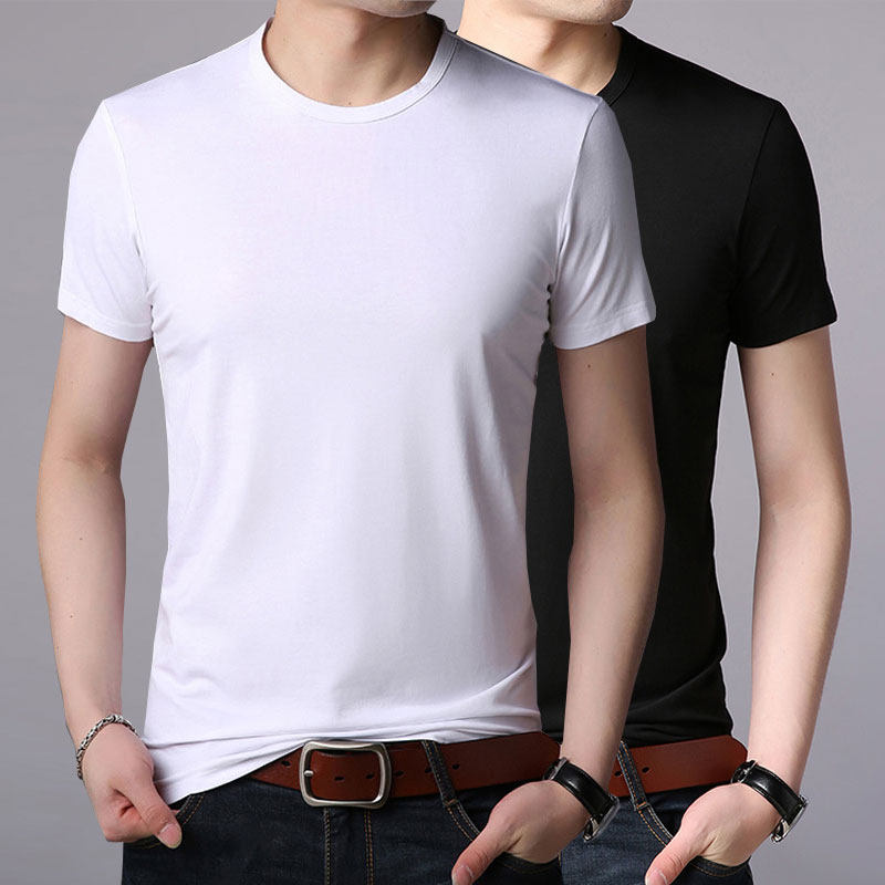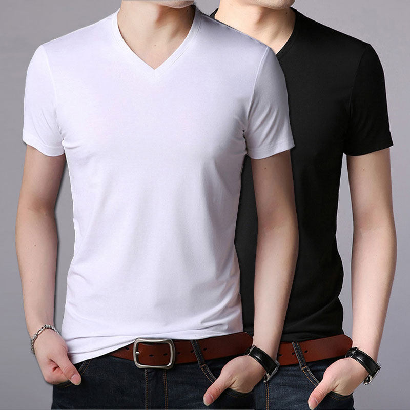 V collar T-shirt male long sleeve spring Korean version Body Tight Fit Pure Cotton White Jersey Man Short Sleeve Pure Color Blouse Tide
