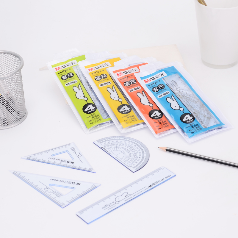 Chenguang Miffy students transparent four-piece ruler primary school students drawing 15cm straight ruler triangular plate protractor set