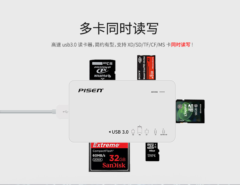 3 0 Multi-letter card reader(support CF SD TF XD MS five kinds of cards)