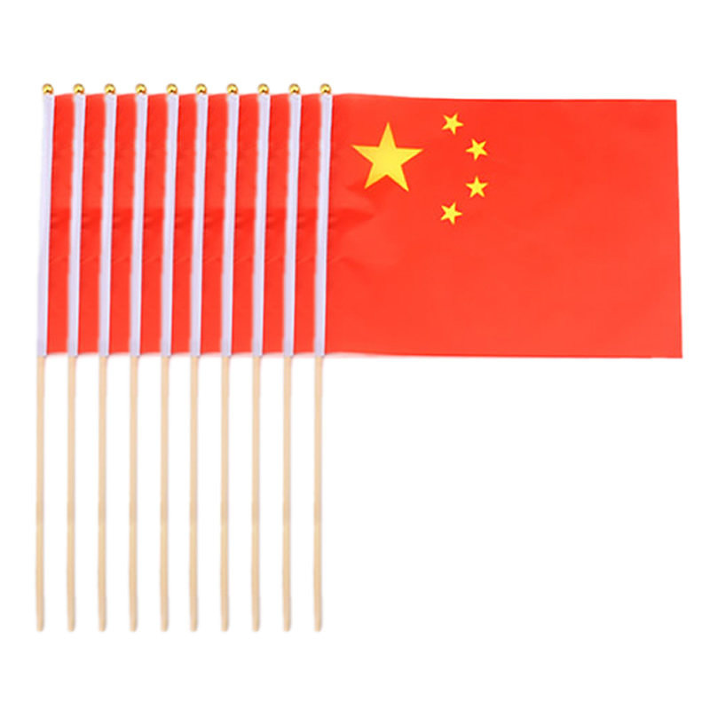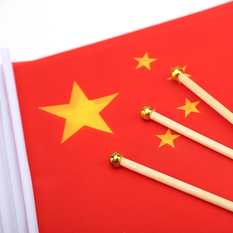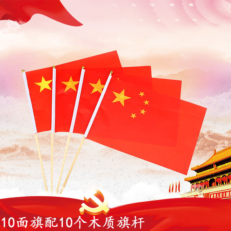 10 flags 10 bamboo poles 20*30cm7 Chinese flag School activity decoration small five-star Red flag Kindergarten hand-waving flag Hand-waving flag Student solid wood pole National Day small flag