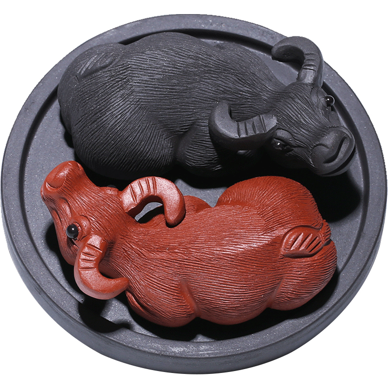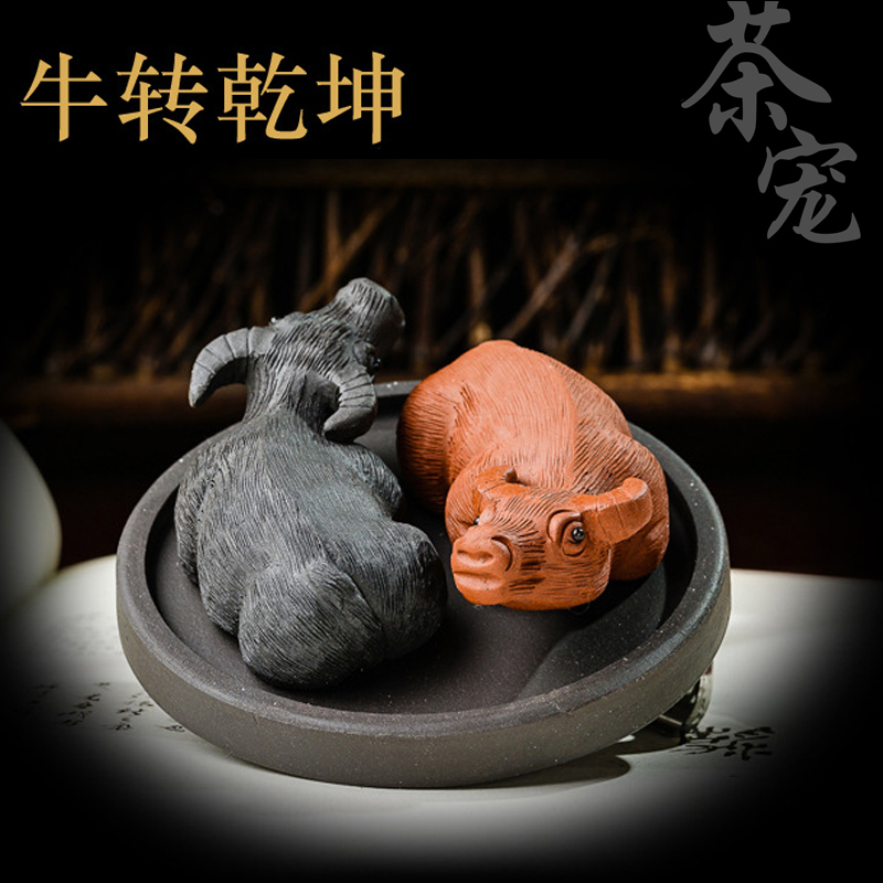 Zisha tea pet cattle ornaments can raise cattle and turn dry Kun two cattle zodiac animal tea play color-changing tea treasure tea table decoration