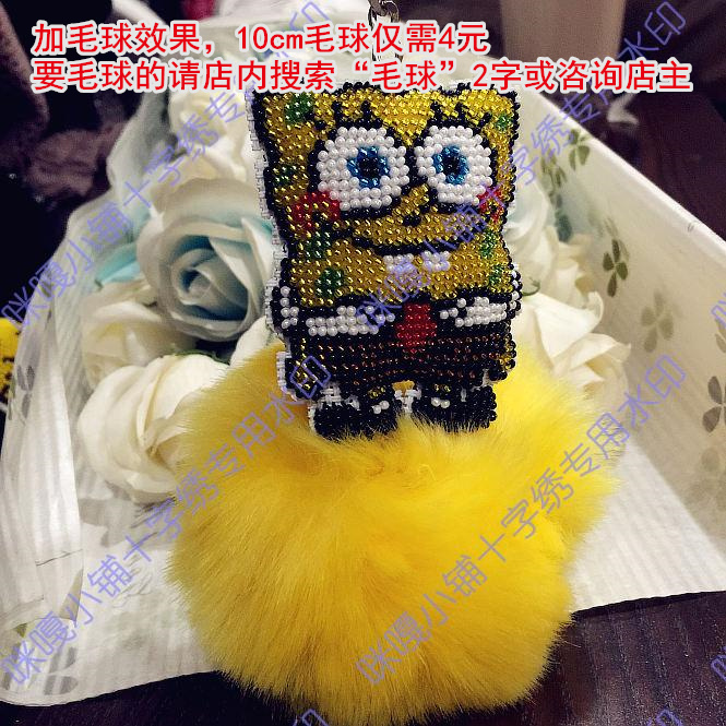 (Bursting) Cross Stitch Pearl Embroidered Keyring Baby Sponge Sea Star Print 2 Optional