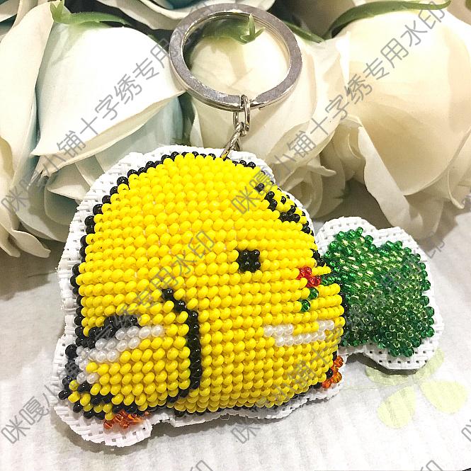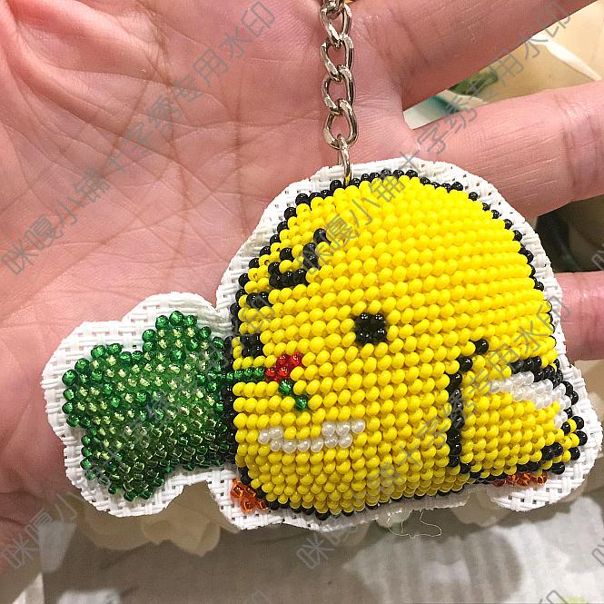 Miga Cross embroidered bead embroidered key ring double-sided embroidered S531 lucky small yellow chicken with no watermark material bag