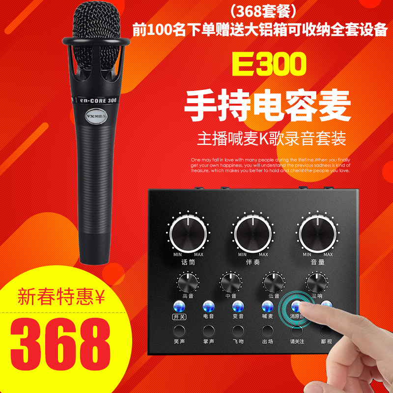 e300 Handheld Capacitive Microphone Fast Hands Full K Song Yelling Wheat Live Microphone Mobile Phone Computer Sound Card Universal Suit