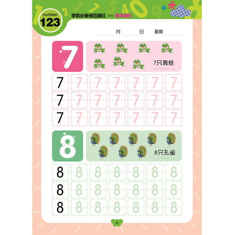 Genuine preschool essential specification tracing red digital tracing red book preschool children recognize mathematics and write digital workbook