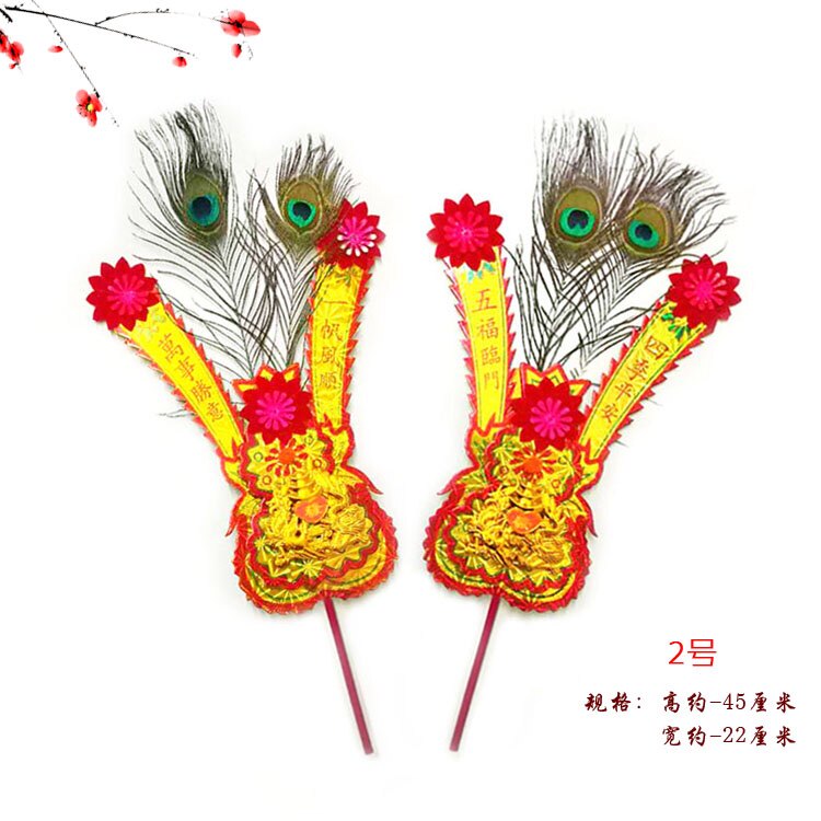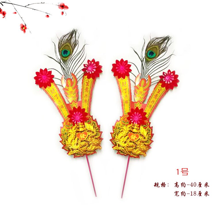 The Chaoshan Baibai Laoye Fengwei Golden Flower Festive Golden Flower Chaoshan Customs Incense Stove Golden Flower Red Silk 1 pair