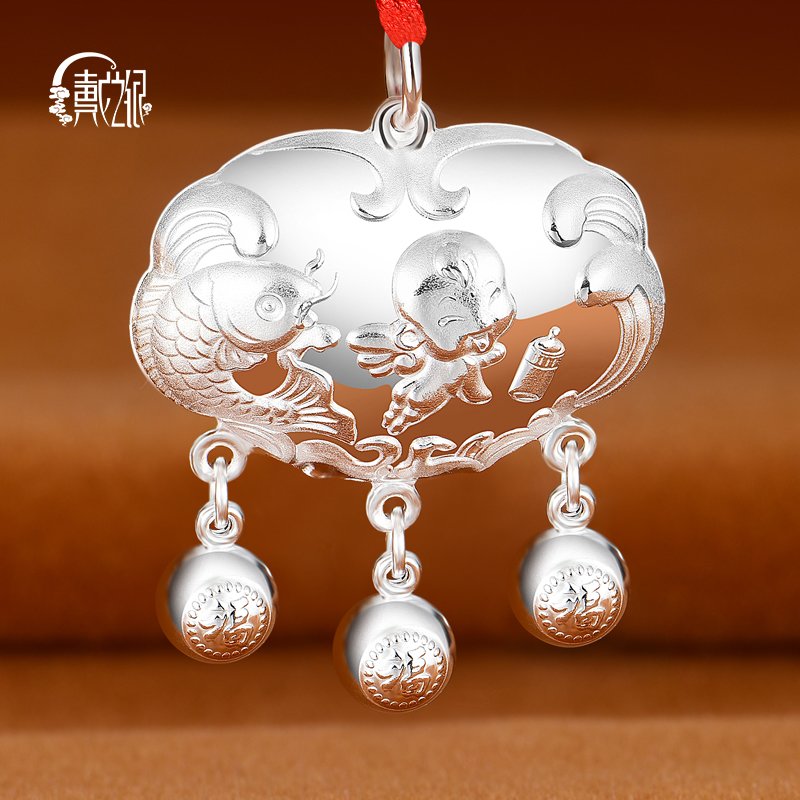 9999 foot silver baby long life lock Rat baby full moon gift Sterling silver jewelry Dog Zodiac silver lock necklace pendant