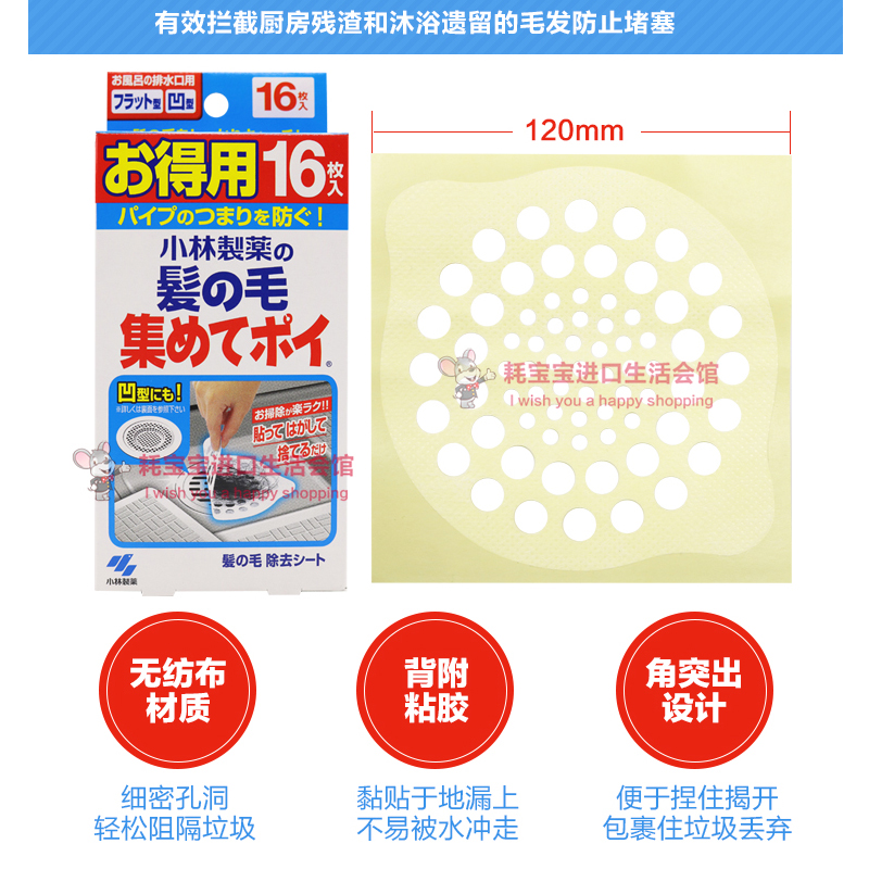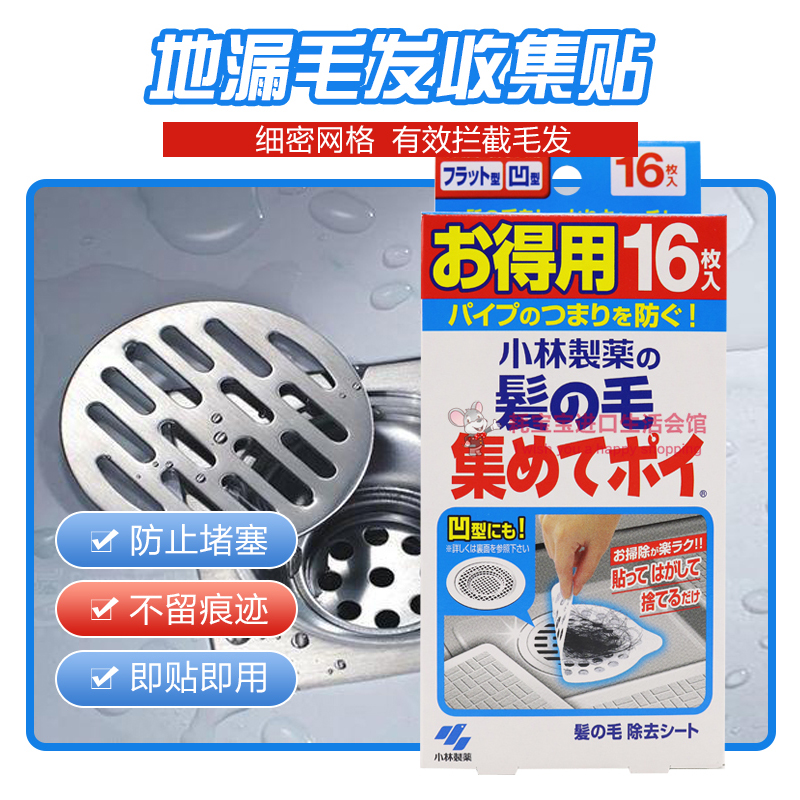 Japan's original Kobayashi pharmaceutical sewer hair collection stickers anti-clogging floor drain filter hair filter paper 16 pieces