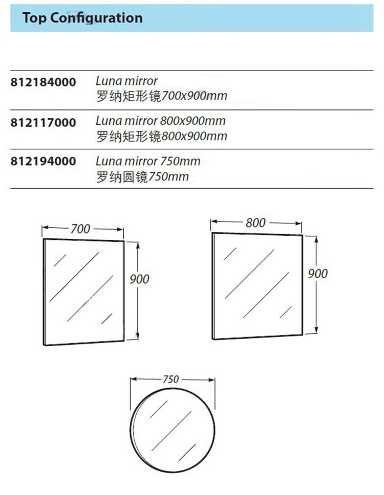 Roca Rhone Bathroom Mirror 812117000 812194000 812184000 Round Square Bathroom Mirror