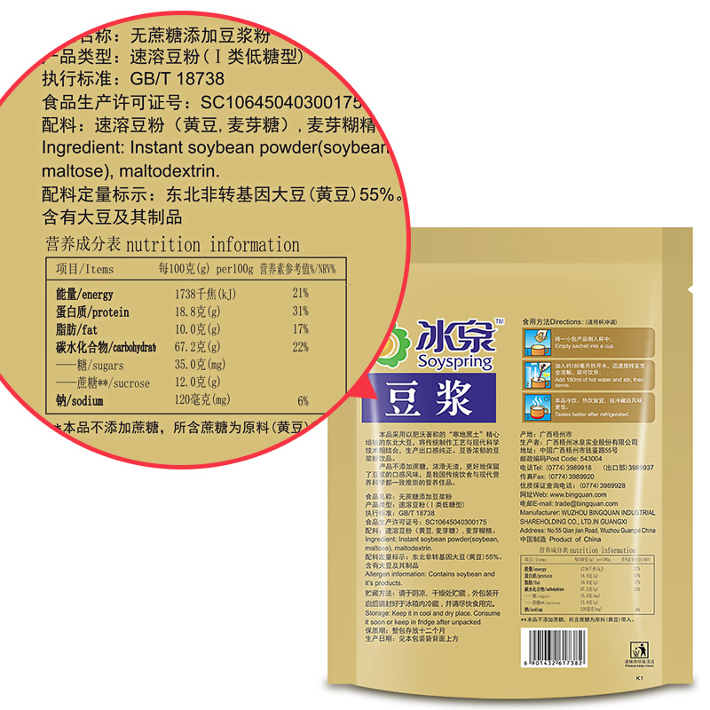 Ice Springs without cane sugar Add soy milk powder 400gX2 Nutritional Breakfast Bagged Flush drinks Meal Powder Food