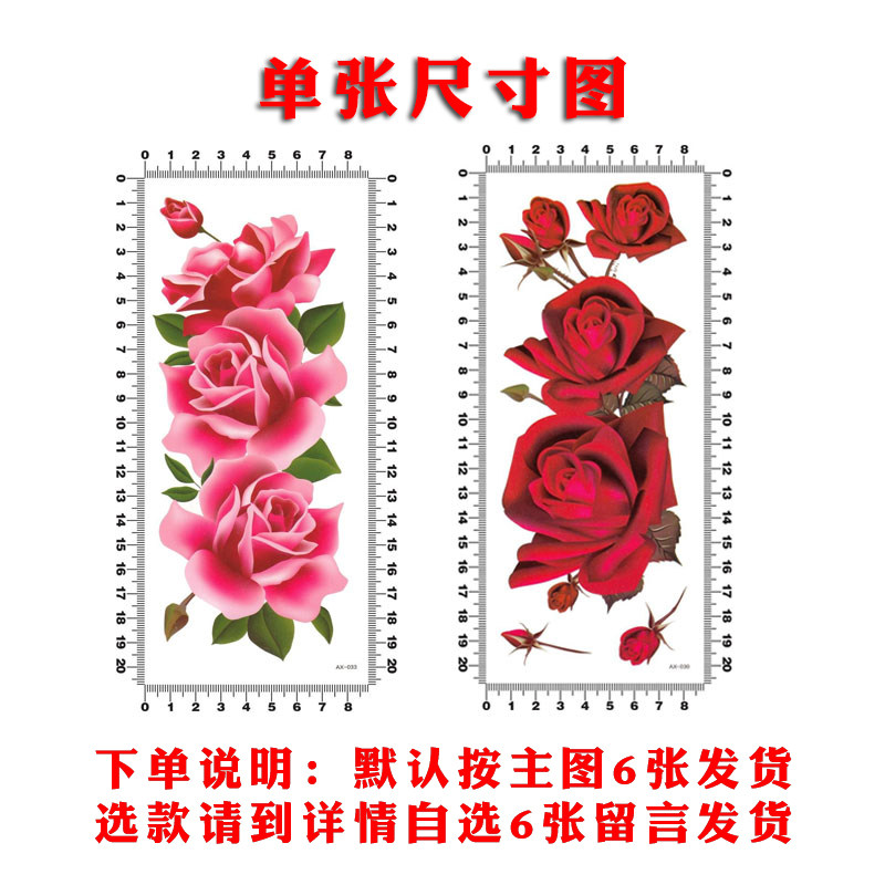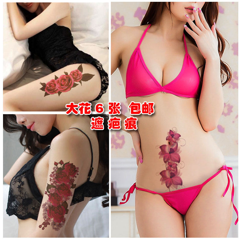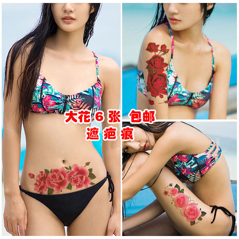 Rose large tattoo sticker waterproof female models lasting simulation sexy flower arm belly cover scar Photo studio photo sticker