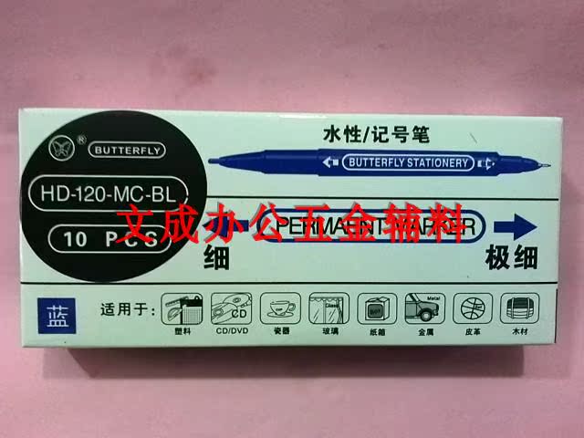 Factory direct butterfly brand water-based small double-headed hook line pen a box of 10 pieces