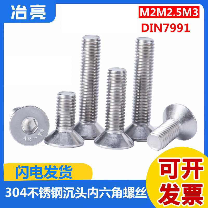 304 stainless steel countersunk head hex screw M2M2 5M3*4 5 6 8-50mm flat head hex screw