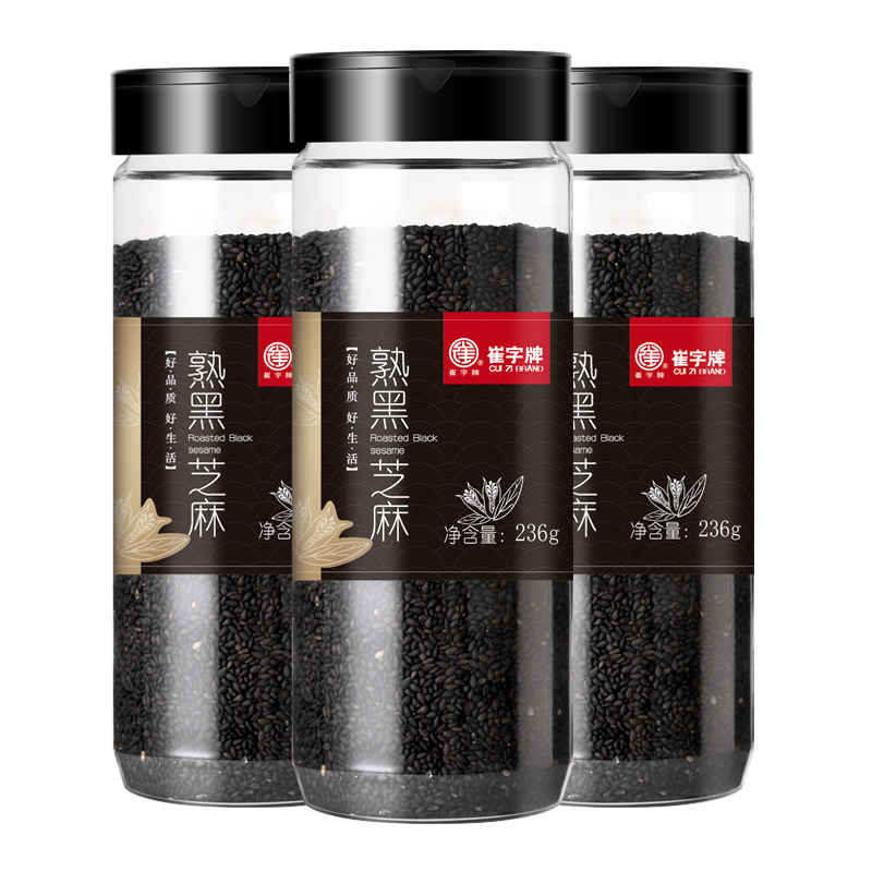 Time-honored brand Cuizi brand black sesame cooked ready-to-eat dry-to-eat no-wash sesame seeds can be ground and fried canned 236gx3 bottles