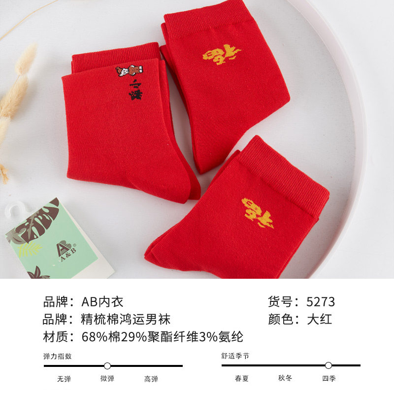 AB underwear men's cotton socks medium-thick birth year big red socks wedding socks in the tube blessing word festive good luck socks 5273