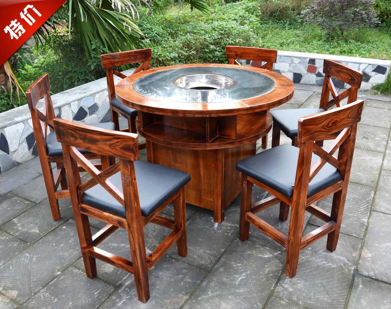 Manufacturer set to make marble hot pot table and chairs induction stove liquefied gas cooker solid wood cabinet type hot pot table round b84-Taobao