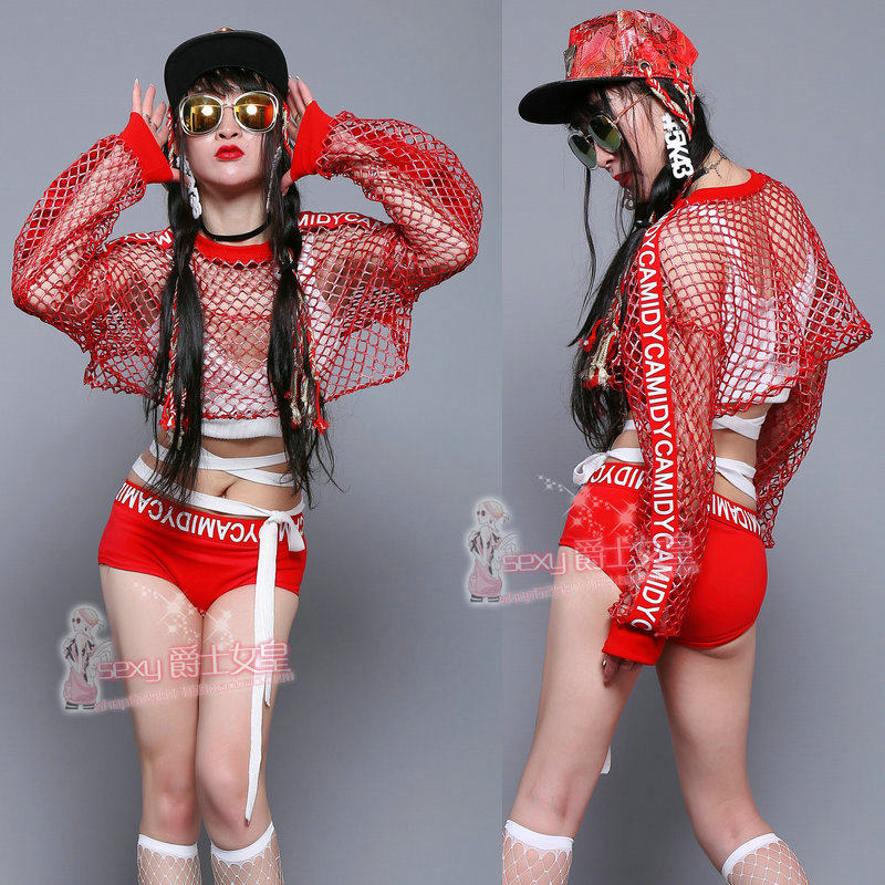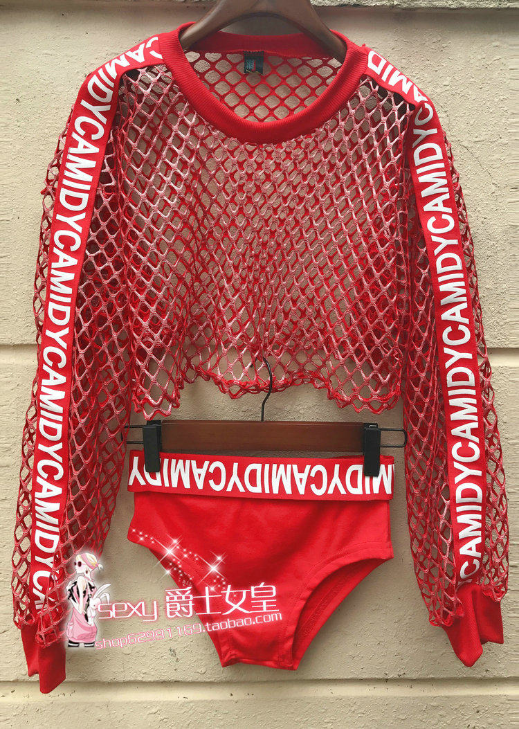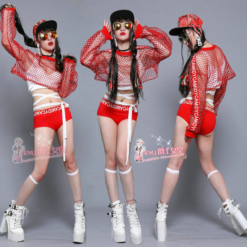 New big net split dance jazz dance blouse suit hip-hop performance costume street dance modern dance stage costume