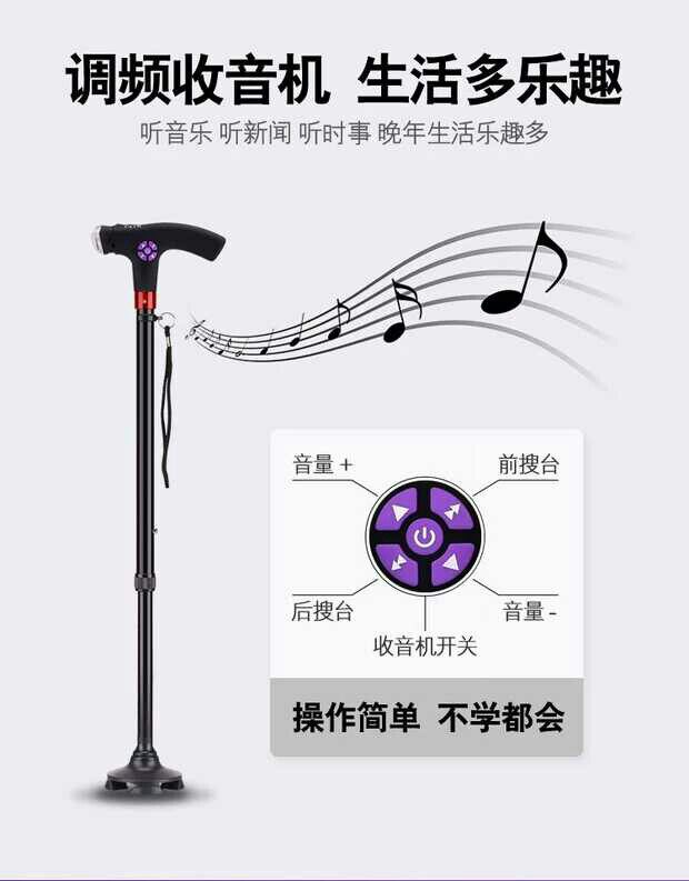 With light and radio fall alarm multi-functional aluminum alloy telescopic crutches old man crutches smart cane climbing