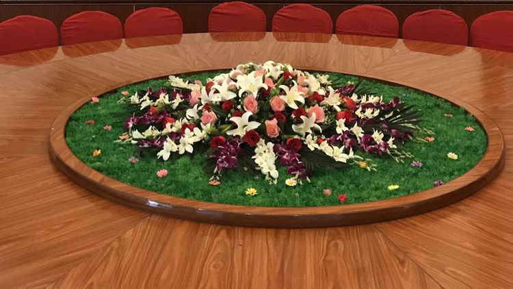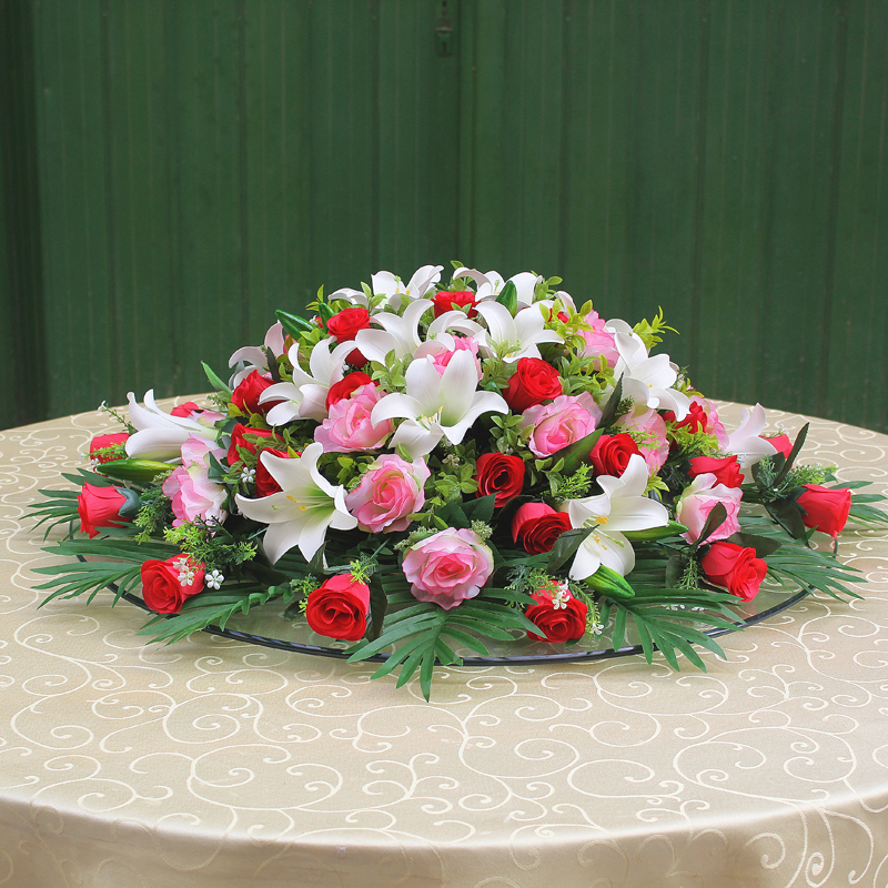 Hotel table flower art swing piece large round table pendulum flower glass turntable flower decoration flower round fake flower table flower simulation flower