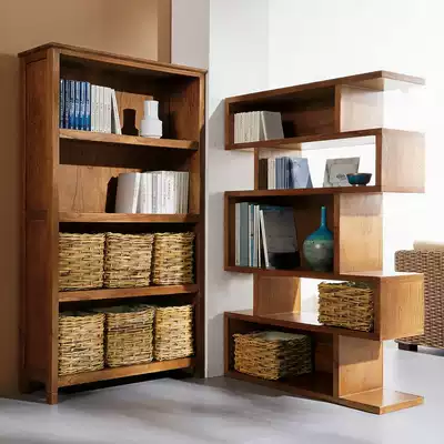 Nordic solid wood bookshelf Walnut color shelf Simple partition shelf Creative bookcase American modern entrance cabinet