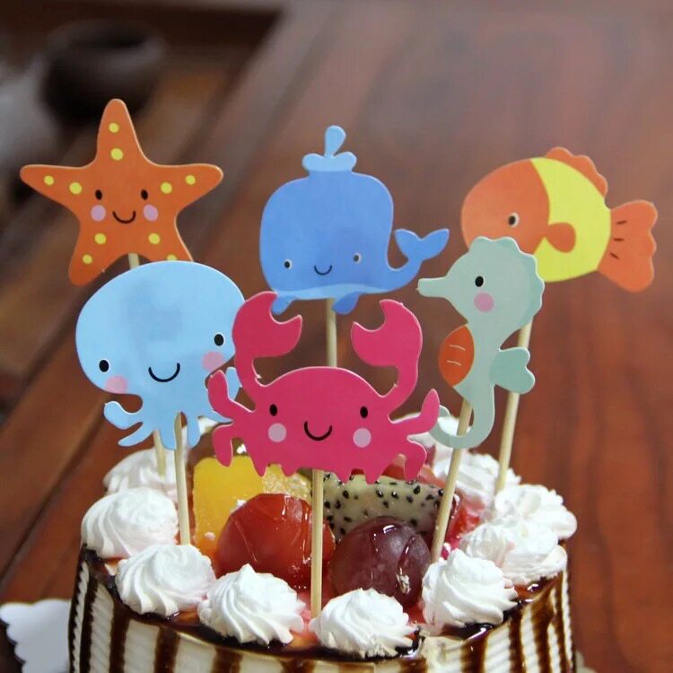 Cake Baking Card Insert Card Plug-in Prince Ocean World Various Cartoon Wooden Flags Baking Decoration
