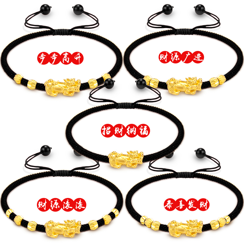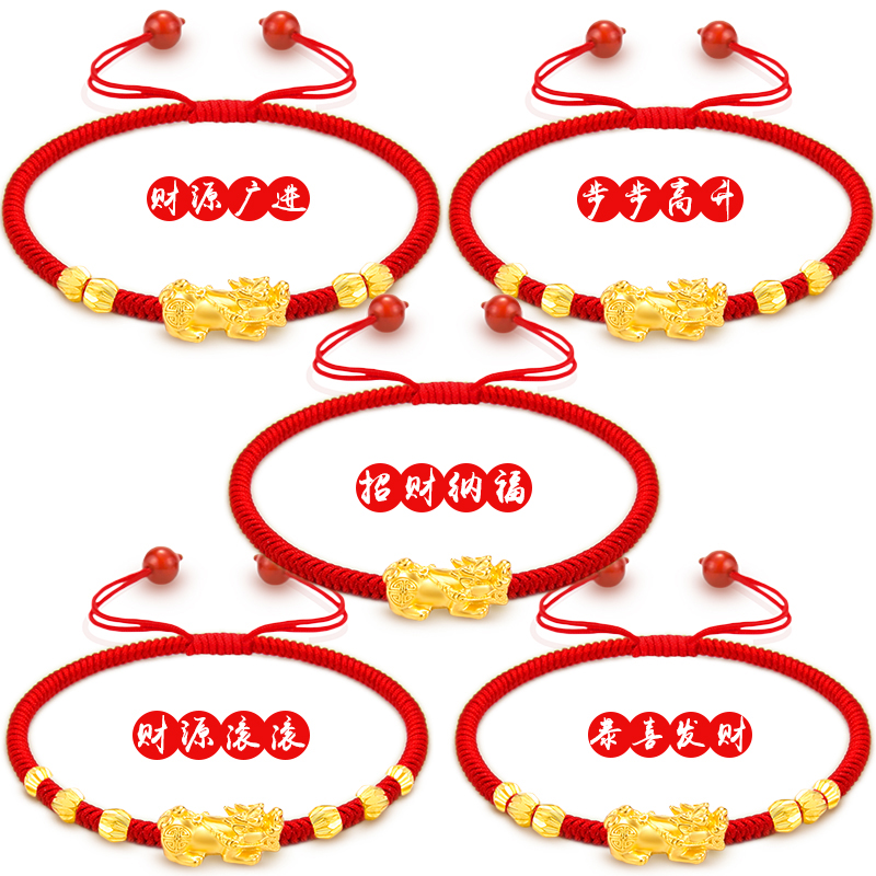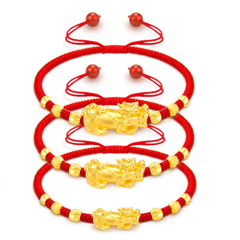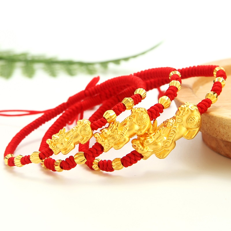 Pure Gold 999 Gold Pixiu Bracelet for Men and Women 3D Hard Gold Transfer Zhulu Lutong Red Rope Bracelet Birthday Gift